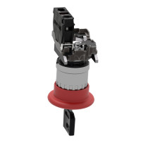 Ce bouton d’arrêt d’urgence à clé de la gamme Harmony XB4 assure une sécurité maximale avec contrôle d’accès via une clé codée n°455. Doté d’une large tête rouge Ø40 mm très visible, il permet un arrêt sécurisé des machines nécessitant la présence de la clé pour actionner ou réarmer. Ce modèle comprend deux contacts : un contact à ouverture (1O - NC) pour couper le circuit de sécurité, et un contact à fermeture (1F - NO) pour signaler l’état ou piloter une fonction auxiliaire. Fixation fiable par vis et étrier sur panneau Ø22 mm.