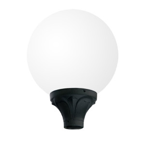 Globo 300 mm en polyméthacrylate de méthyle (PMMA) avec une base classique en résine antichoc, stabilisée aux UV, étanche à la rouille et à la corrosion. Convient pour le montage de poteaux, de suspension ou de paroi. Egalement équipé d'ampoules LED adaptées à une utilisation en extérieur, certifiée T-V-CB, durable et à haut rendement. Classe d'isolation II, indice de protection IP55.
