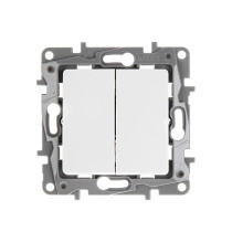 Cet interrupteur ou va-et-vient, Niloé, de la marque Legrand, permet d’actionner un luminaire dans une pièce. Il peut être associé à un autre interrupteur pour remplir sa fonction de va-et-vient et commander ainsi le luminaire via deux endroits différents. Ce mécanisme offre une haute résistance aux chocs et à la torsion grasse à son épaisseur. Il est livré avec son enjoliveur, son support, ainsi qu’une coque de protection de chantier. Cet interrupteur dispose de bornes automatiques facilitant son raccordement lors de son installation.