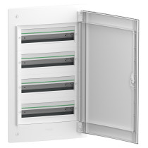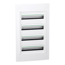 Ce coffret PrismaSeT XS est un coffret de distribution encastré. Ce coffret plastique est composé de 4 rangées de 18 modules de 18mm. Il peut accueillir tous les types d'appareillage modulaire. Cette enceinte est dédiée à une installation en intérieur. Le degré de protection IP est IP40 porte fermée. Il est muni d'une porte pleine. La couleur du coffret, de la plaque frontale et de la porte est blanche (RAL 9003). Cette enceinte prête à l'emploi est destinée aux secteurs résidentiel et tertiaire. Il est conçu pour les électriciens, apportant ergonomie et souplesse d'installation.