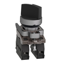 Ce bouton tournant à crosse de la gamme Harmony XB4 est conçu pour la sélection manuelle de fonctions dans des systèmes de commande industriels. Il dispose de 3 positions fixes permettant de commuter entre plusieurs états (ex : Arrêt – Marche – Manuel). Sa manette en crosse noire garantit une bonne préhension même avec des gants. Il est équipé de 2 contacts à fermeture (2F – NO) et se monte solidement sur des panneaux standard Ø22 mm via un système de vis et étrier métallique, assurant fiabilité et robustesse.