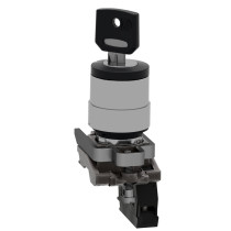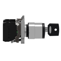 Ce bouton à clé de la gamme Harmony XB4 est conçu pour les commandes industrielles sécurisées nécessitant un accès restreint. Il dispose d’un mécanisme à 2 positions avec retour automatique par ressort à gauche et fonctionne avec une clé standard n°455. La fixation robuste par vis et étrier métallique garantit une installation fiable sur panneaux percés Ø22 mm.