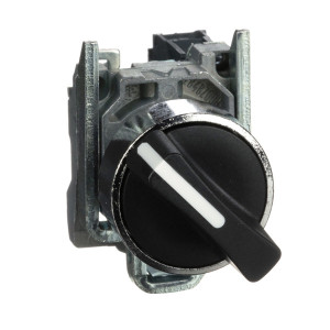 Ce bouton tournant manette de la gamme Harmony XB4 permet une sélection précise entre deux positions fixes, avec une fonction de commande fiable grâce à ses deux contacts : un contact à ouverture (1O - NC) et un contact à fermeture (1F - NO). La manette noire assure une bonne prise en main. Il est conçu pour être monté sur panneau standard Ø22 mm avec fixation par vis et étrier, garantissant une installation robuste.